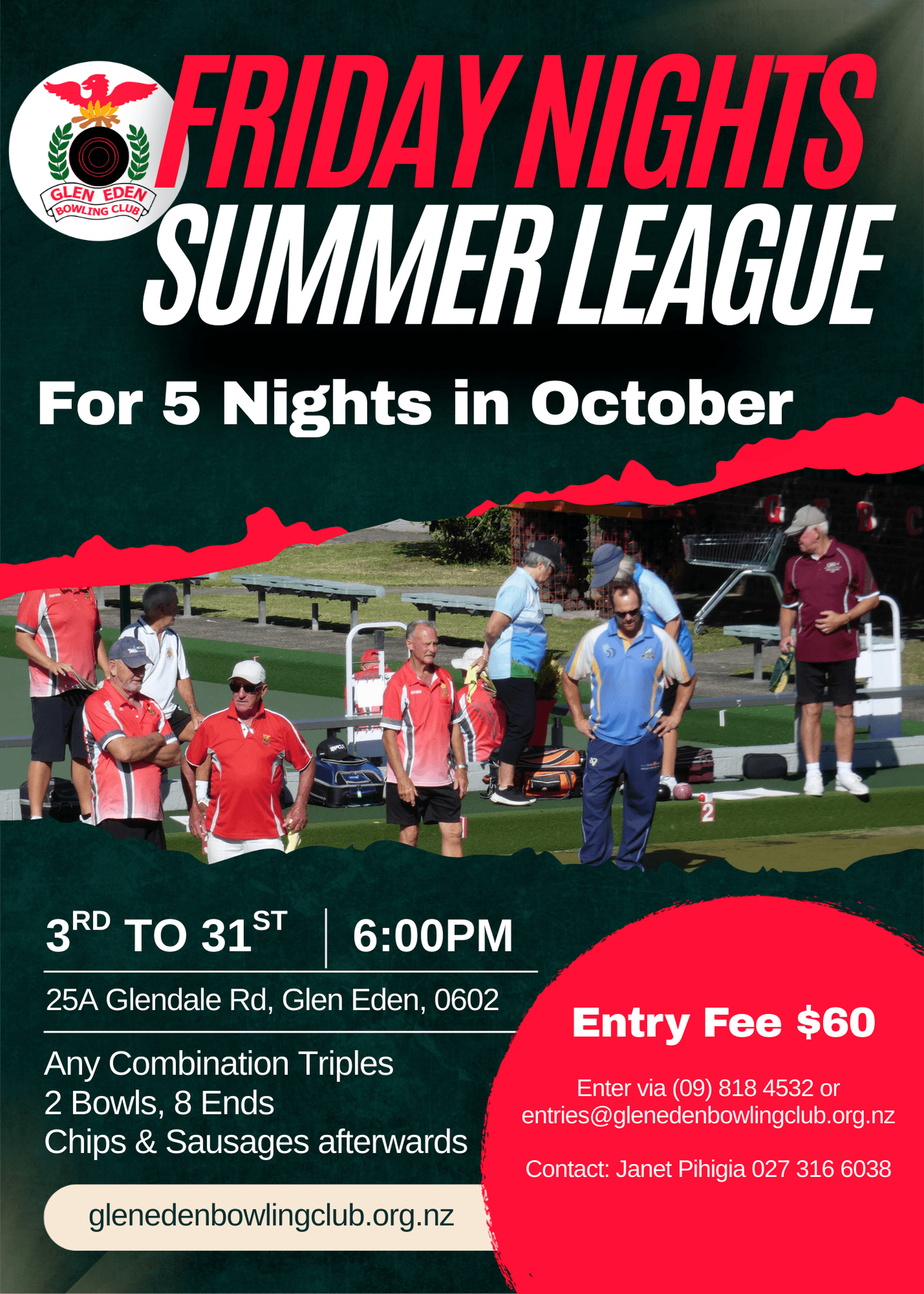 entries@glenedenbowlinclub.org.nz, (09) 818 4532 or add team name on the board at the club |